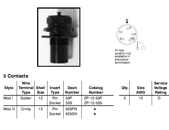 Amphenol EX-13-1-12-653SN Star-line EX Panel Mount Receptacle, 5 Socket Crimp Contacts