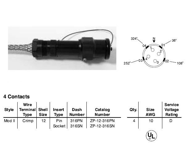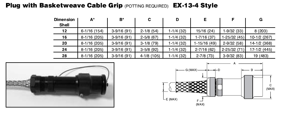 Amphenol EX-13-4-15-12-316SN Star-line EX Plug with Basketweave Cable Grip, 4 Scoket Crimp Contacts