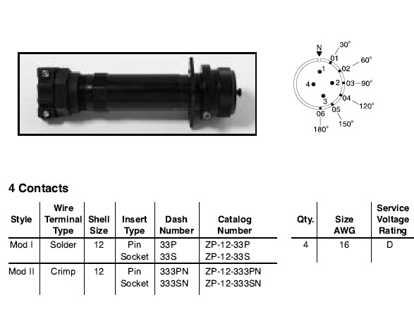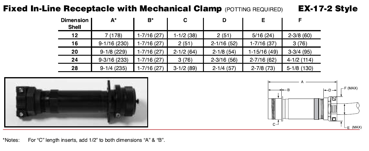 Amphenol EX-17-2-02-12-33P Star-line EX Fixed In-Line Receptacle with Mechanical Clamp, 4 Pin Solder Contacts