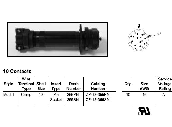 Amphenol EX-17-2-12-12-355SN Star-line EX Plug with Mechanical Clamp, 10 Scoket Crimp Contacts