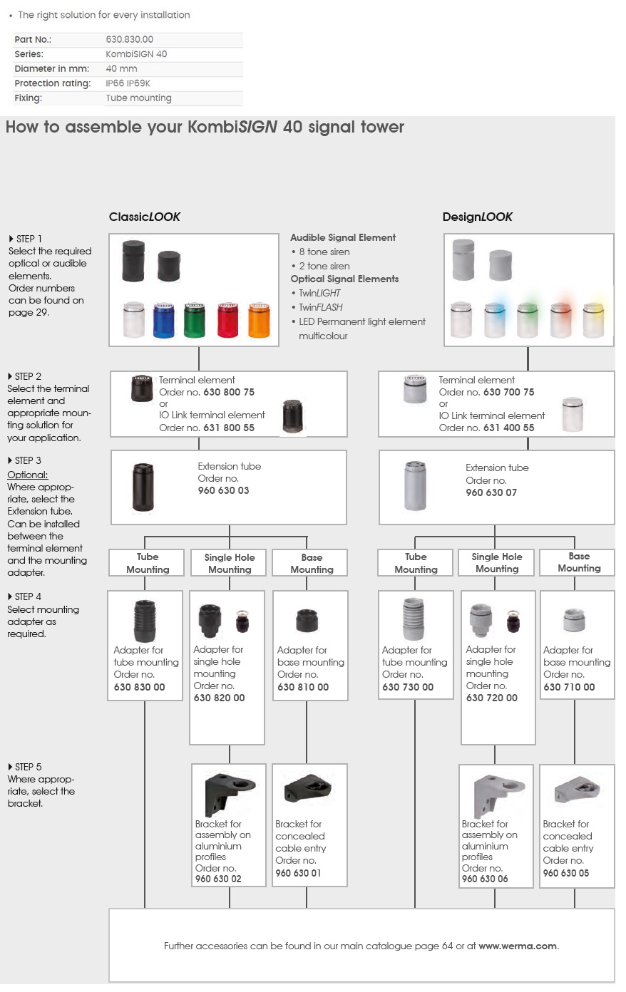 WERMA KombiSIGN 40 630.830.00 Modular Signal Tower Light - Classic Look, Adapter Tube Mounting