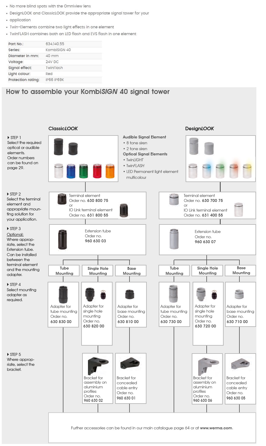 WERMA KombiSIGN 40 634.140.55 Modular Signal Tower Light - Twin Flash, Design Look, Red Colour