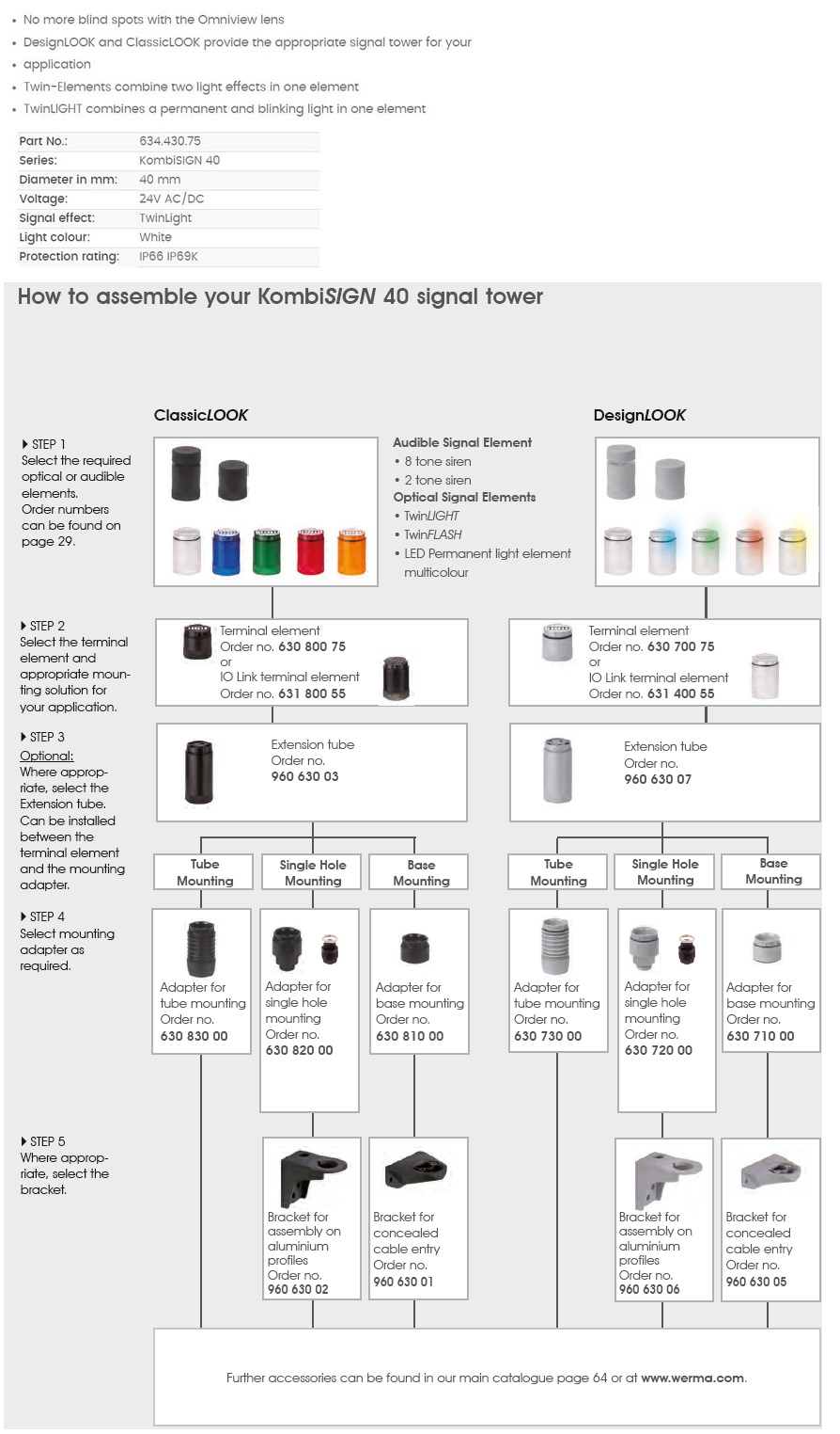WERMA KombiSIGN 40 634.430.75 Modular Signal Tower Light - Twin Light, Design Look, White Colour