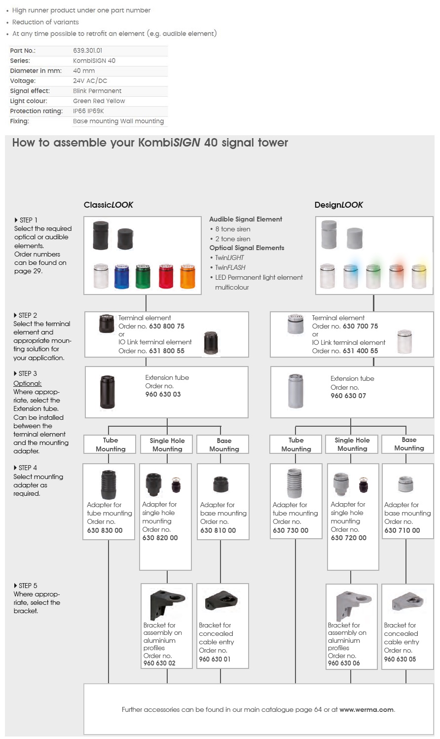 WERMA KombiSIGN 40 639.300.01 Modular Signal Tower Light - Design Look Green/Yellow/Red Colour