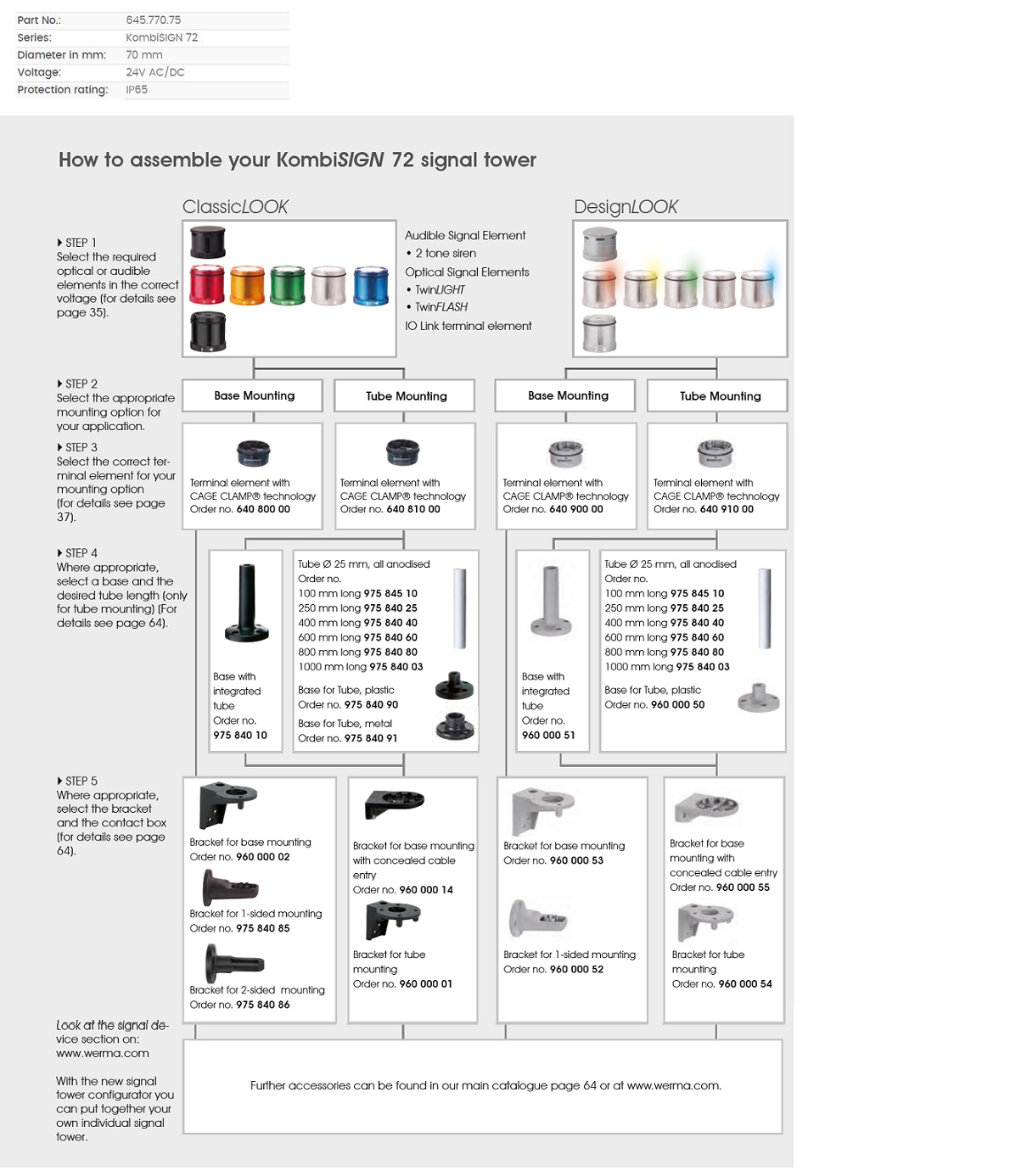 WERMA KombiSIGN 72 645.770.75 Modular Signal Tower Light - Design Look 24V AC/DC 2 Tone Siren Elements
